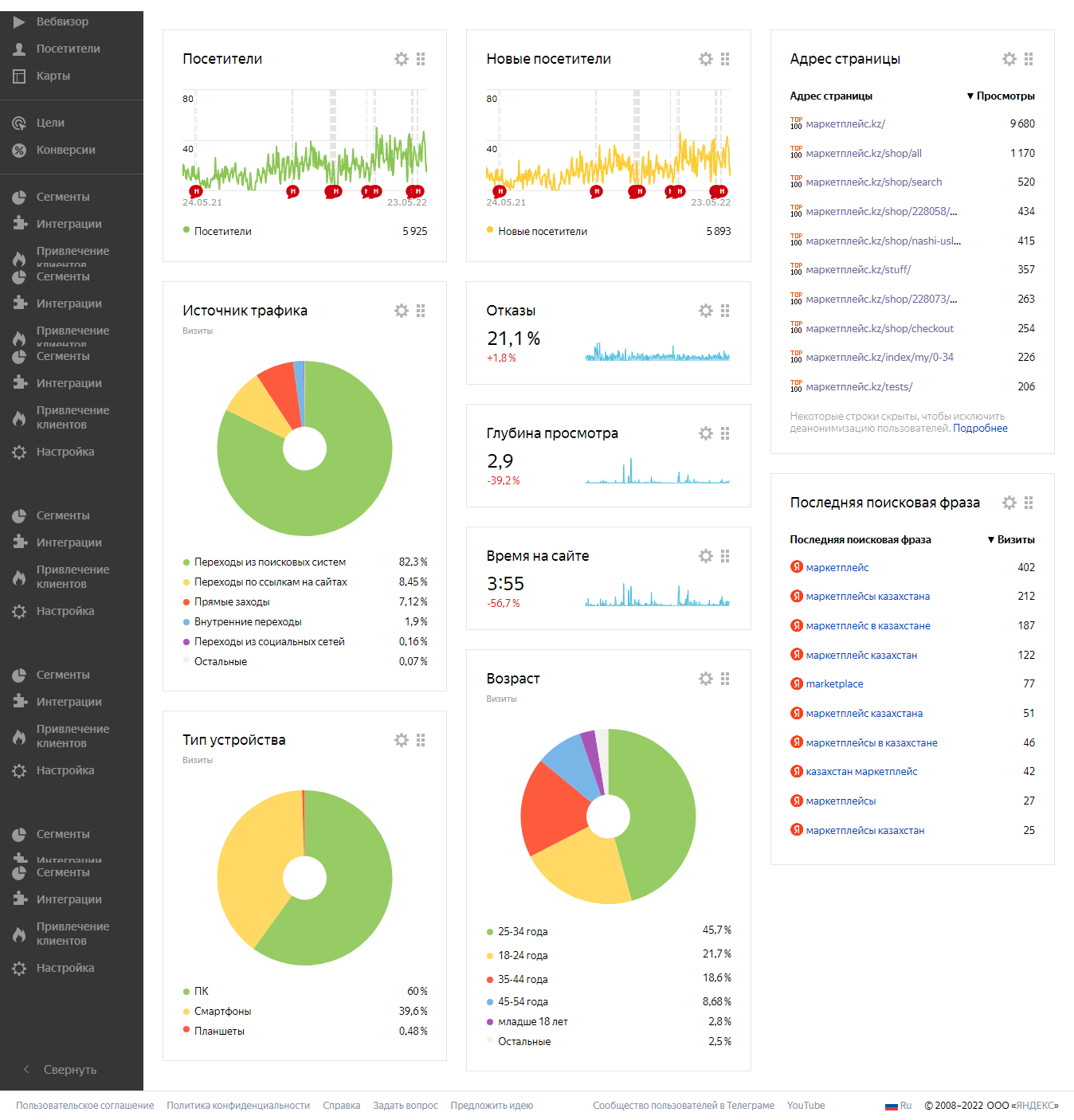 Статистика сайта: маркетплейс.kz